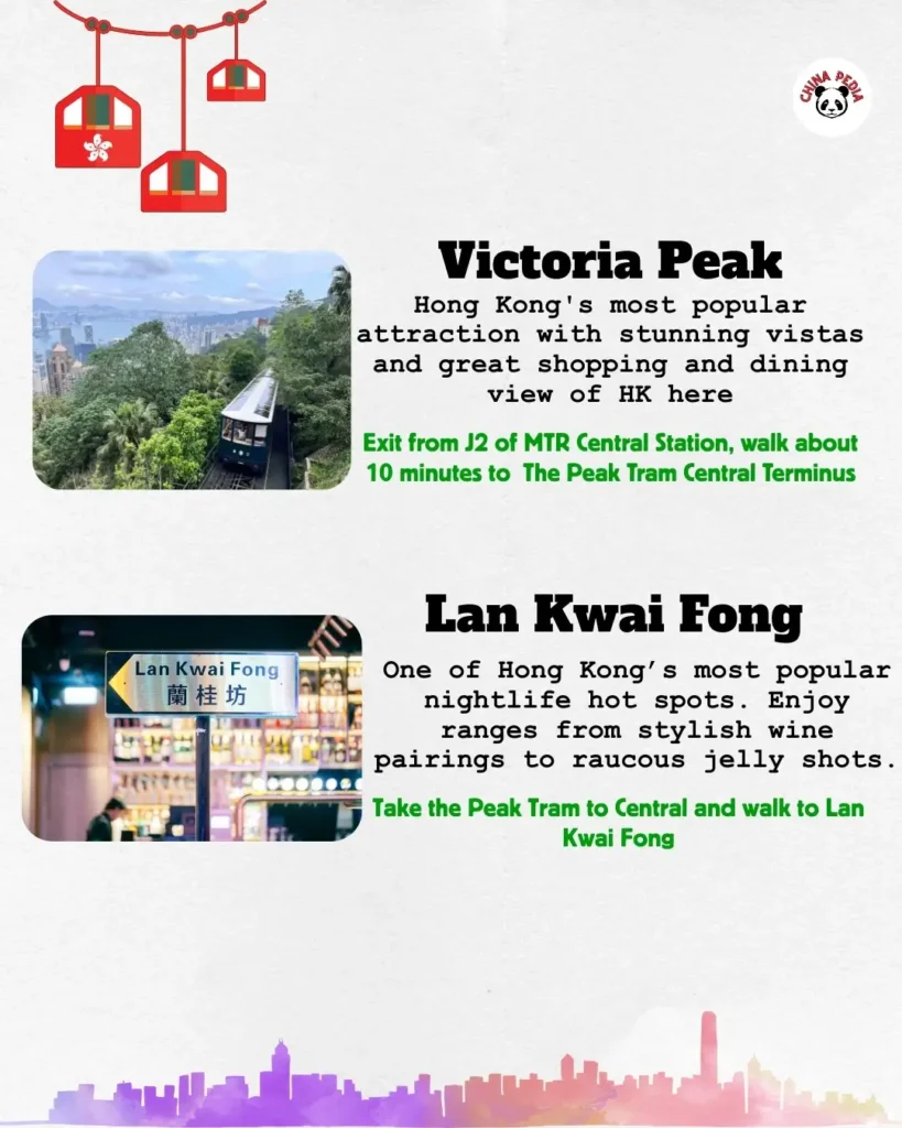 🔸 Day 1: Classic City Vibes Victoria Peak (take the historic Peak Tram) → Central Mid-Levels Escalator → Tai Kwun → Grab evening drinks in Lan Kwai Fong.